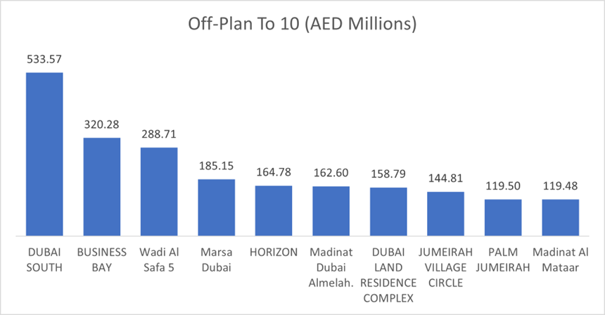 1. Dubai South: AED 533.6 million (14% of off-plan area total).