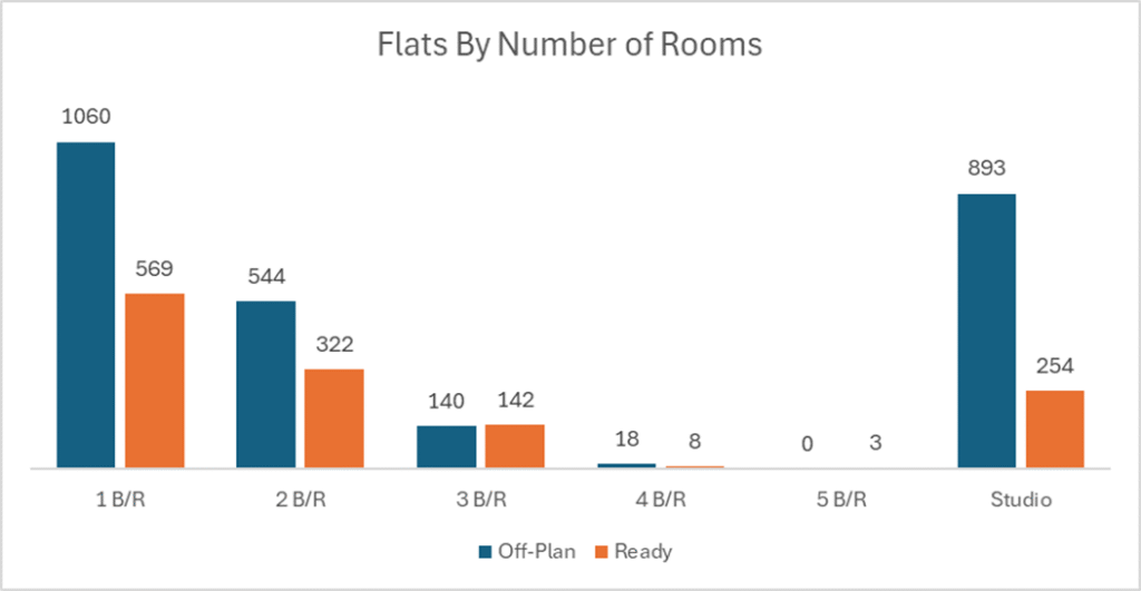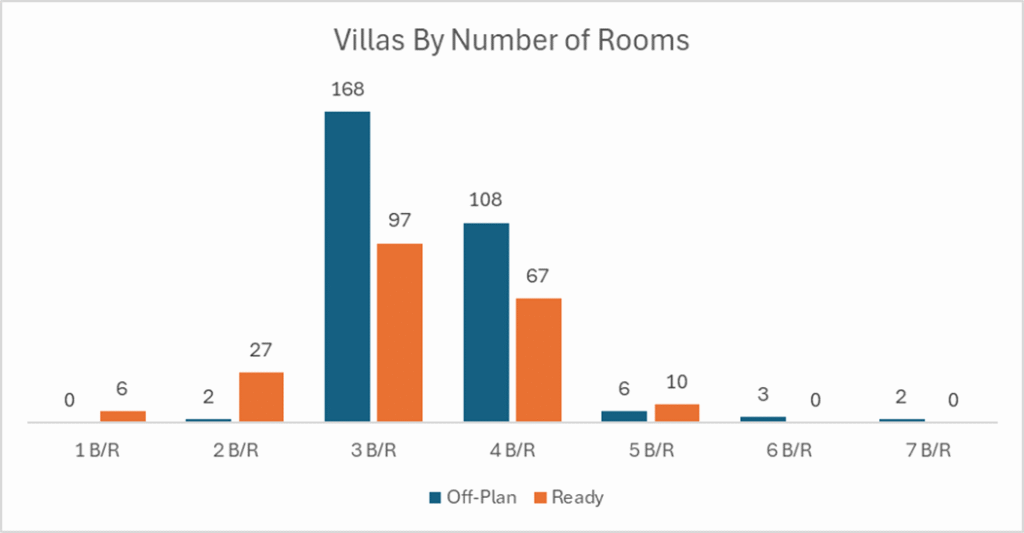 Ready demand was also apartment-heavy but showed a stronger relative presence of commercial compared with off-plan, alongside a solid villa share.