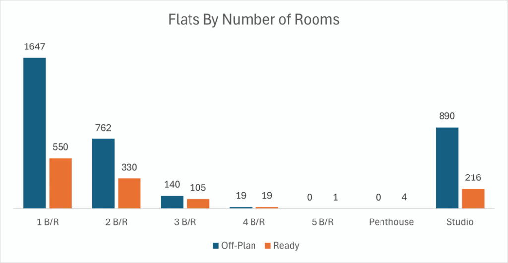 The ready market was led by flats (64.7%), with villas (20.7%) forming the second pillar. Commercials were 10.1%, and hospitality 4.5%.