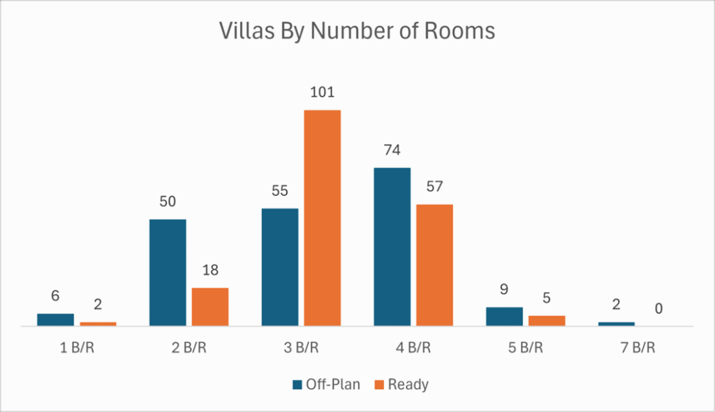 - 3-Bedroom & 4-Bedroom villas dominated the villas with 287 transactions combined.