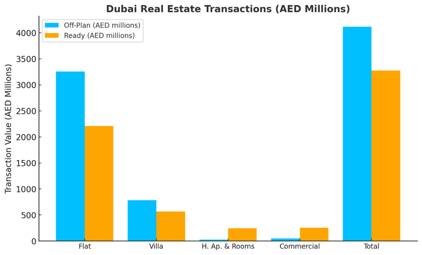 • Off-Plan Properties: AED 4.12 billion, contributing 55.7% to the total weekly transactions.