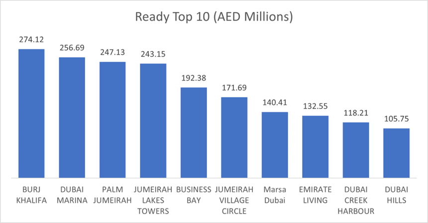 • Business Bay: AED 282.3 million (6.9%)