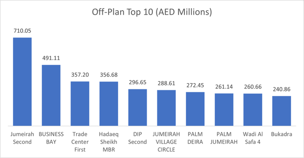 Apartment sales once again powered the off-plan segment, accounting for more than 90% of the total value traded.