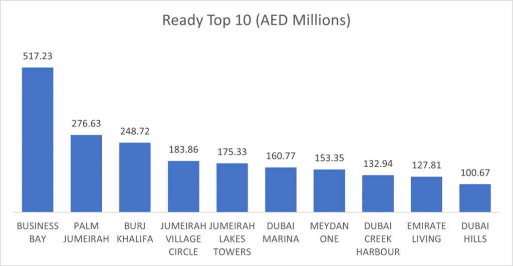 These top five districts represented AED 1.40 billion, or 36.3% of ready transactions.