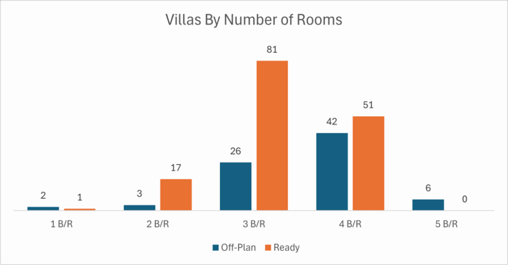 - 3-Bedroom & 4-Bedroom villas dominated the villas with 200 transactions combined.